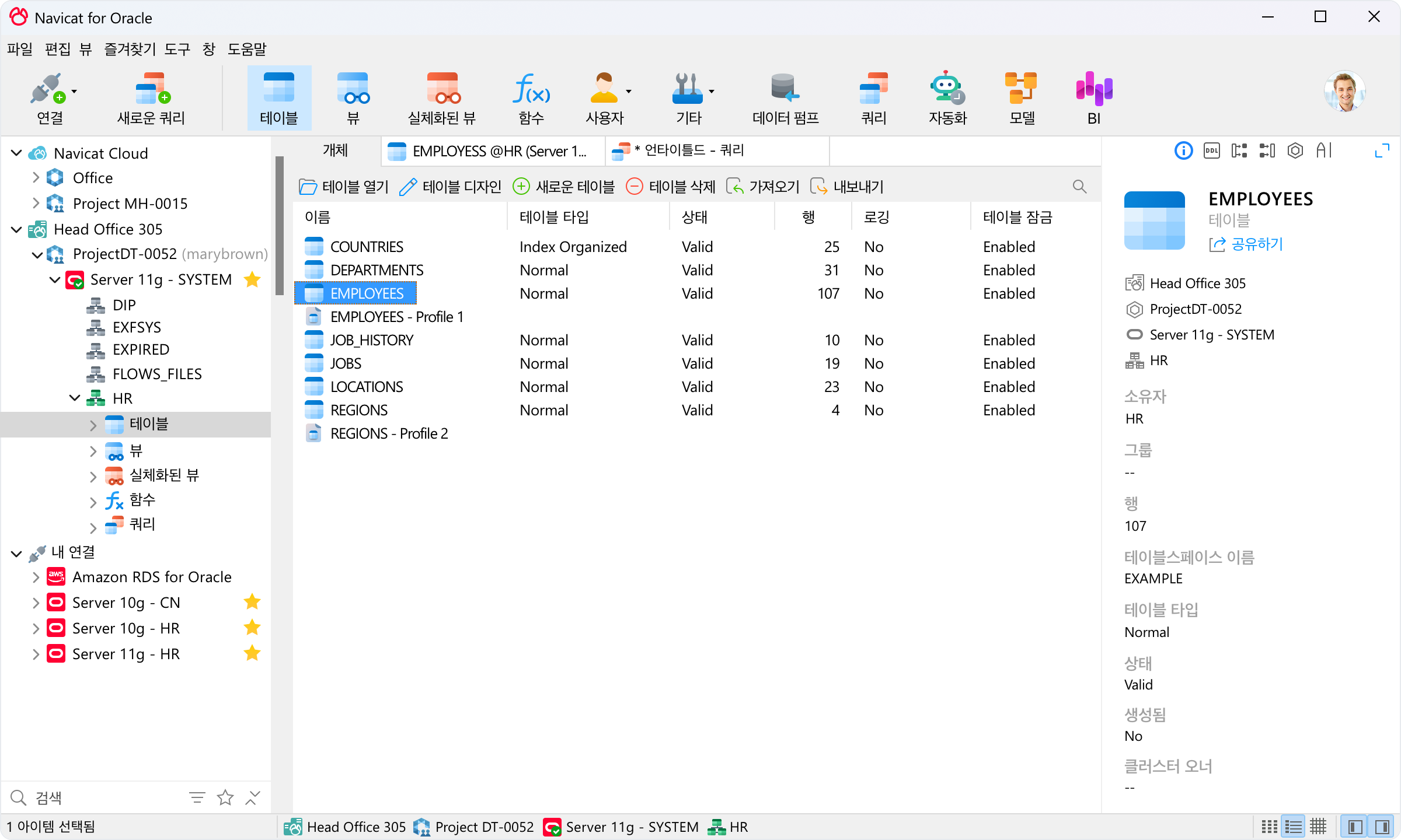 Navicat for Oracle은 간소화된 작업 환경을 통해 Oracle 개발자와 관리자의 효율성과 생산성을 향상시킵니다. 시각적 데이터베이스 설계를 위한 직관적인 데이터 모델링 도구, 효율적인 쿼리 작성을 위한 고급 SQL 편집 기능, 간편한 마이그레이션을 위한 원활한 데이터 전송 옵션, 일상적인 작업을 관리하는 자동화된 작업 예약 등 다양한 기능으로 구성되어 있습니다.